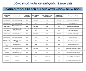 Bảng Quy Đổi Bulong ASTM Sang Cấp Bền ISO/DIN/TCVN (8.8 – 10.9 – 12.9)